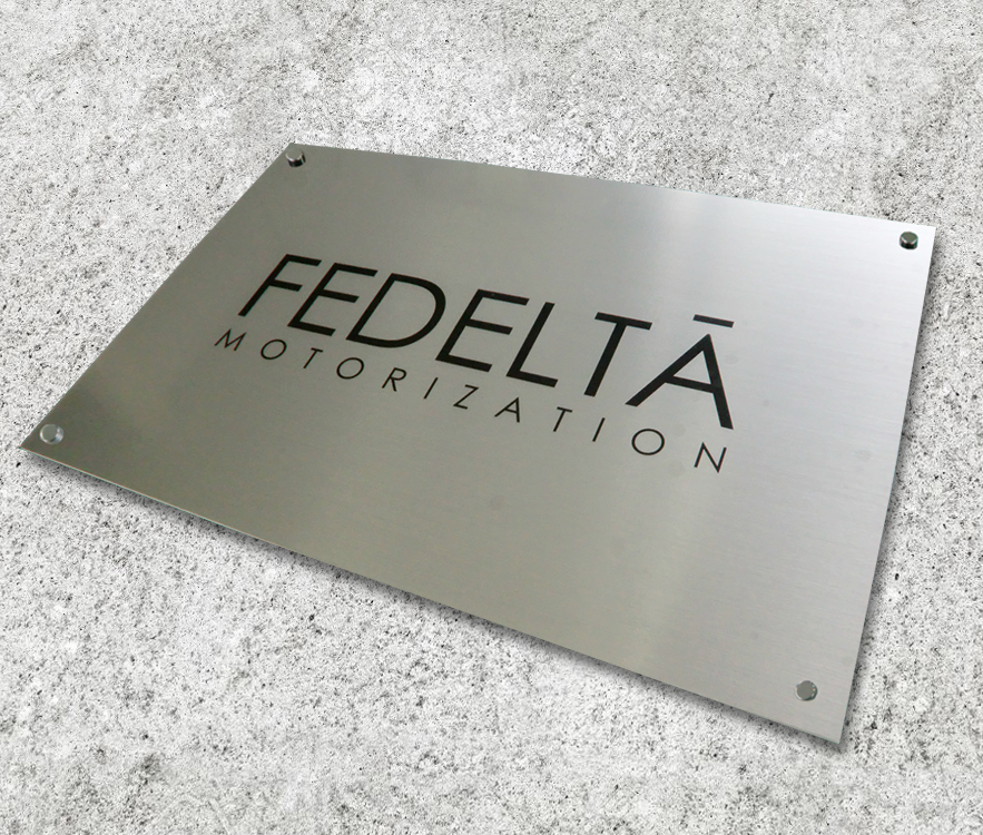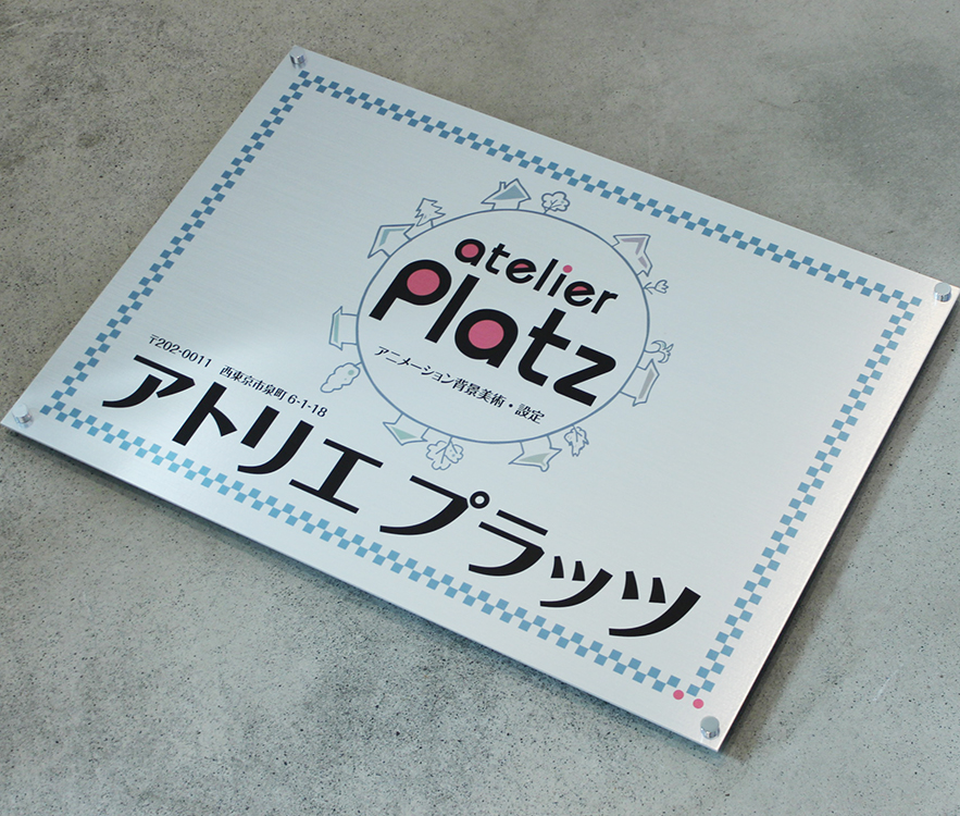 ステンレスHL調シートに看板デザイン自慢のインクジェット印刷で製作致します。看板の耐候年数は3年。